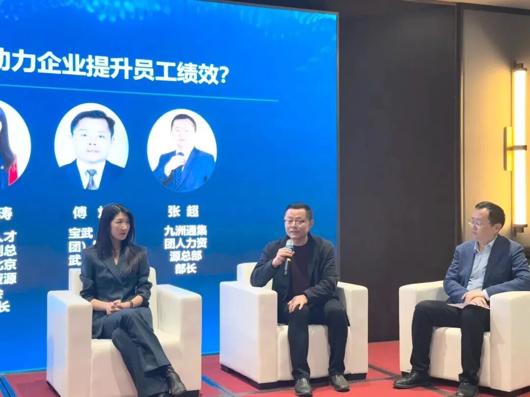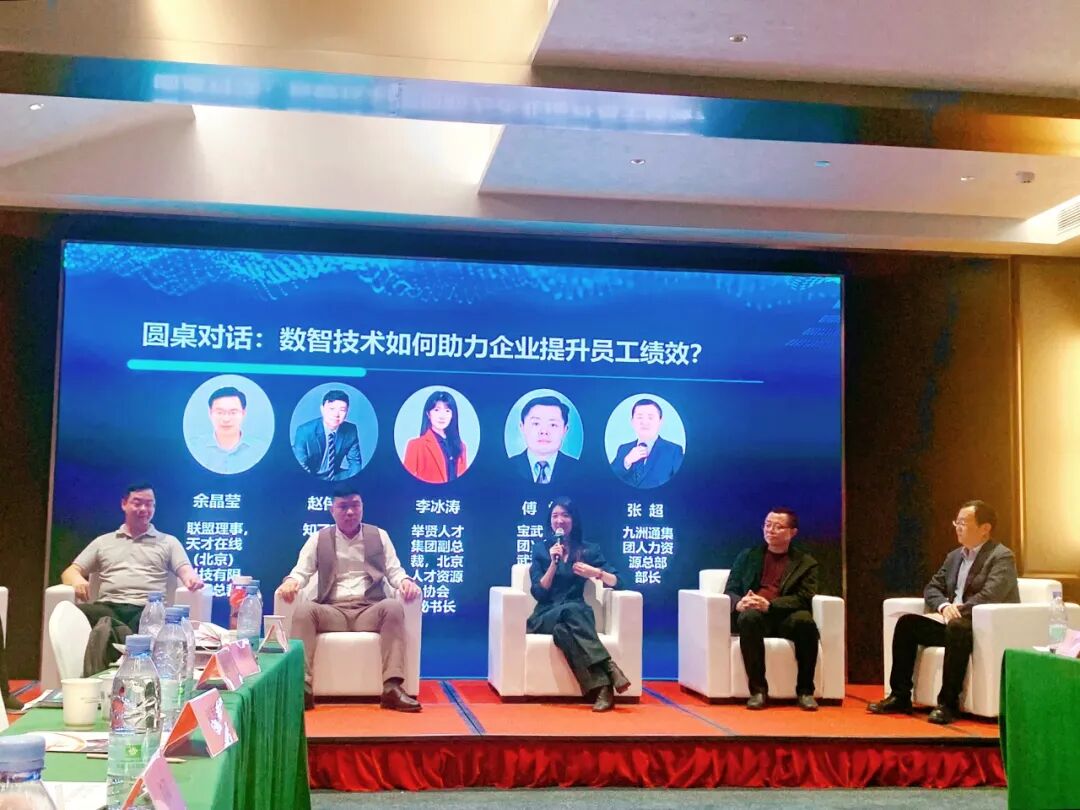 在短暂的茶歇交流后,沙龙进入到了圆桌对话环节。在蒋北麒秘书长的主持下,圆桌对话以“数智技术如何助力企业提升员工绩效”为议题,五位嘉宾妙语频出,碰撞出诸多实践智慧。