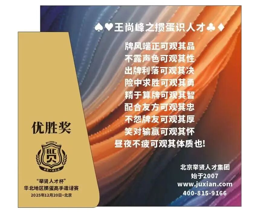 最后,借这个声明,小编给大家拜个早年:希望2026年,各位在掼蛋桌上能“抓一手好牌”,在职场上更能“遇一身本事”。新的一年举贤网也会继续深耕人才服务,以形式多样的识才方法和专业顾问团队,为企业找对人、为人才找好家。最后祝各位新年快乐,咱们牌局见,职场更要见!